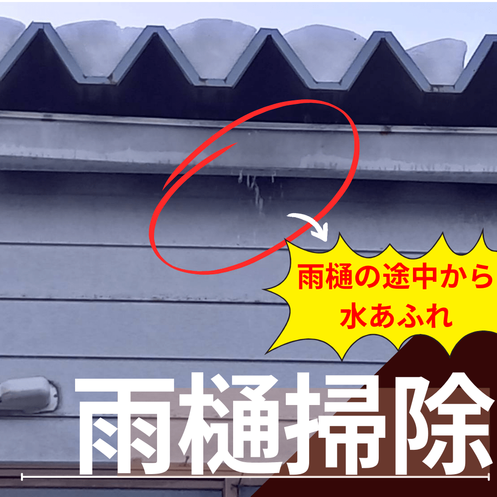 雨樋の途中から水があふれ困っていたからご連絡をいただきました。