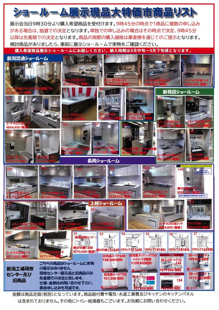 タカラショールーム展示品を大特価で販売致します!キッチン、浴室、洗面台。サイズなど合うものがあればお得です!このチャンスをお見逃しなく(^^)/完全予約制になりますので、お問い合わせはハイハイネットまで。