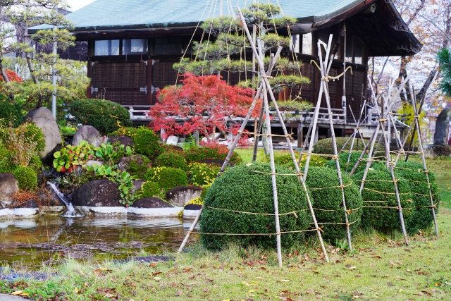 元々のお庭の美しさもあるのでしょうが、冬囲い自体にもセンスが必要なんだな、と思わされます。